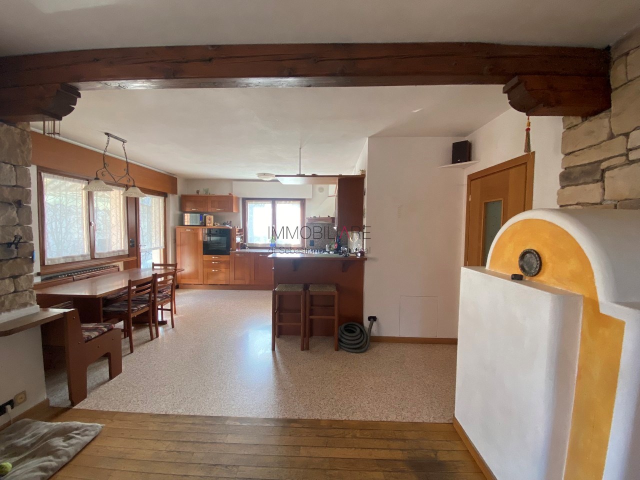 La casa si presenta in perfette condizioni, con grande cura del dettaglio e si compone di un ingresso ampio e luminoso che introduce a una spaziosa zona giorno, impreziosita da una meravigliosa stube proprio in centro al fabbricato.